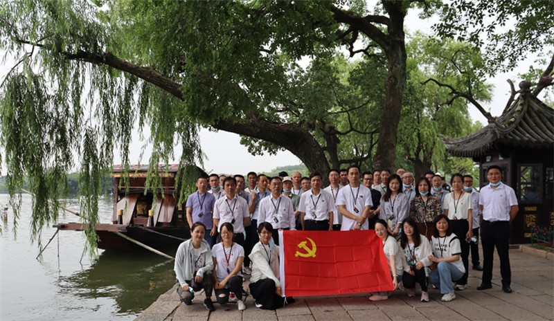 首先,党支部一行抵达嘉兴南湖,沿着一大代表的足迹,一路行至渡口,乘坐渡船抵达湖心岛,近距离瞻仰红船。小小红船,承载千钧,各位党员在中国共产党革命火种燃起的地方感受“百年红船今犹在,革命精神代代传”的精神与力量,感悟“开天辟地、敢为人先的首创精神,坚定理想、百折不挠的奋斗精神,立党为公、忠诚为民的奉献精神”的“红船精神”伟大内涵。